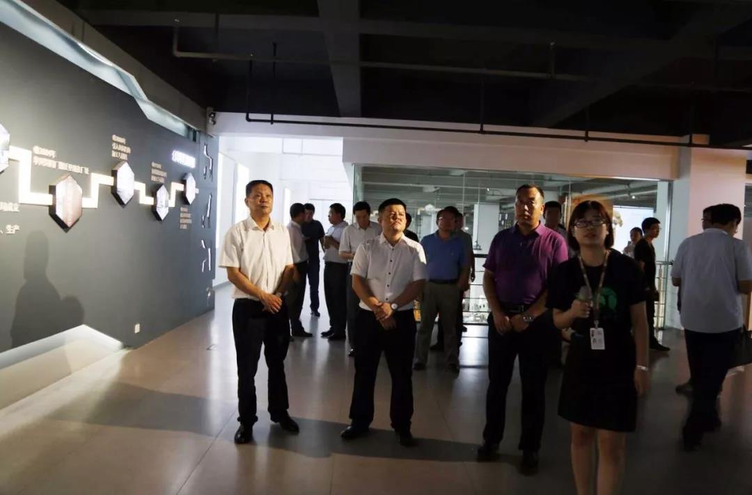 8月1日上午,新疆若羌縣委副書記、縣長艾山江帶領考察團走進華興進行調研,南和縣委副書記、縣長韓明智陪同調研,在總經理冀葉軍陪同下走進華興二期參觀通道。