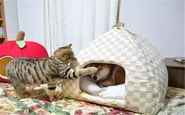 喵星人和汪星人這對冤家真是打了半輩子了,不管怎么打汪星人好像就沒咋贏過,尤其是在搶窩這件事上,更是被喵星人完虐。